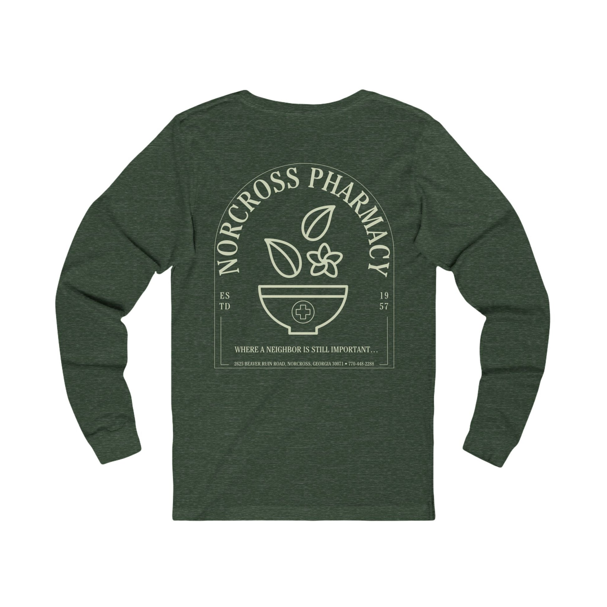 Vintage-Inspired Long Sleeve Relaxed Unisex T-Shirt for Norcross Pharmacy